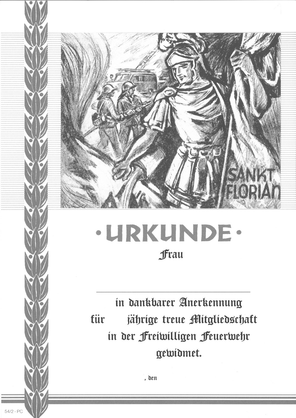 Feuerwehurkunde mit Text für Frauen in DIN A 4, Bild und Golddruck