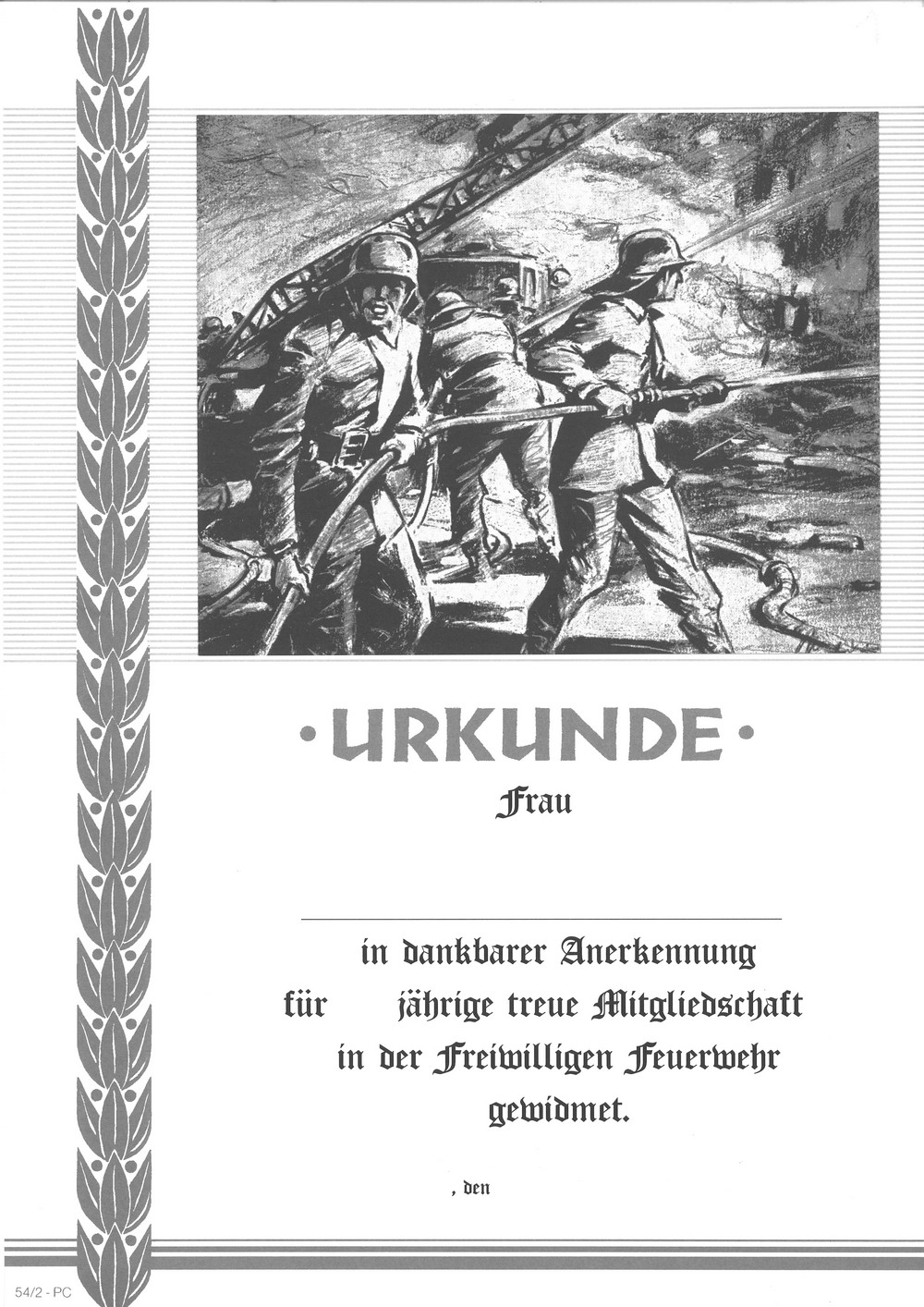 Feuerwehrurkunde mit Text