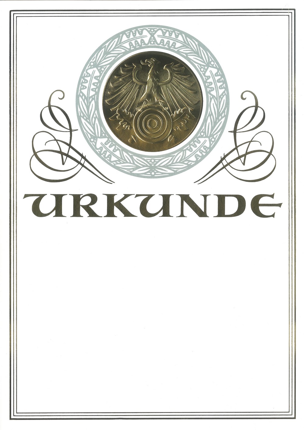 Schützensport Urkunde in DIN A4 - Goldfolienprägung - Relief, zum selber gestalten, Drucker geeignet, Bild wird lose geliefert