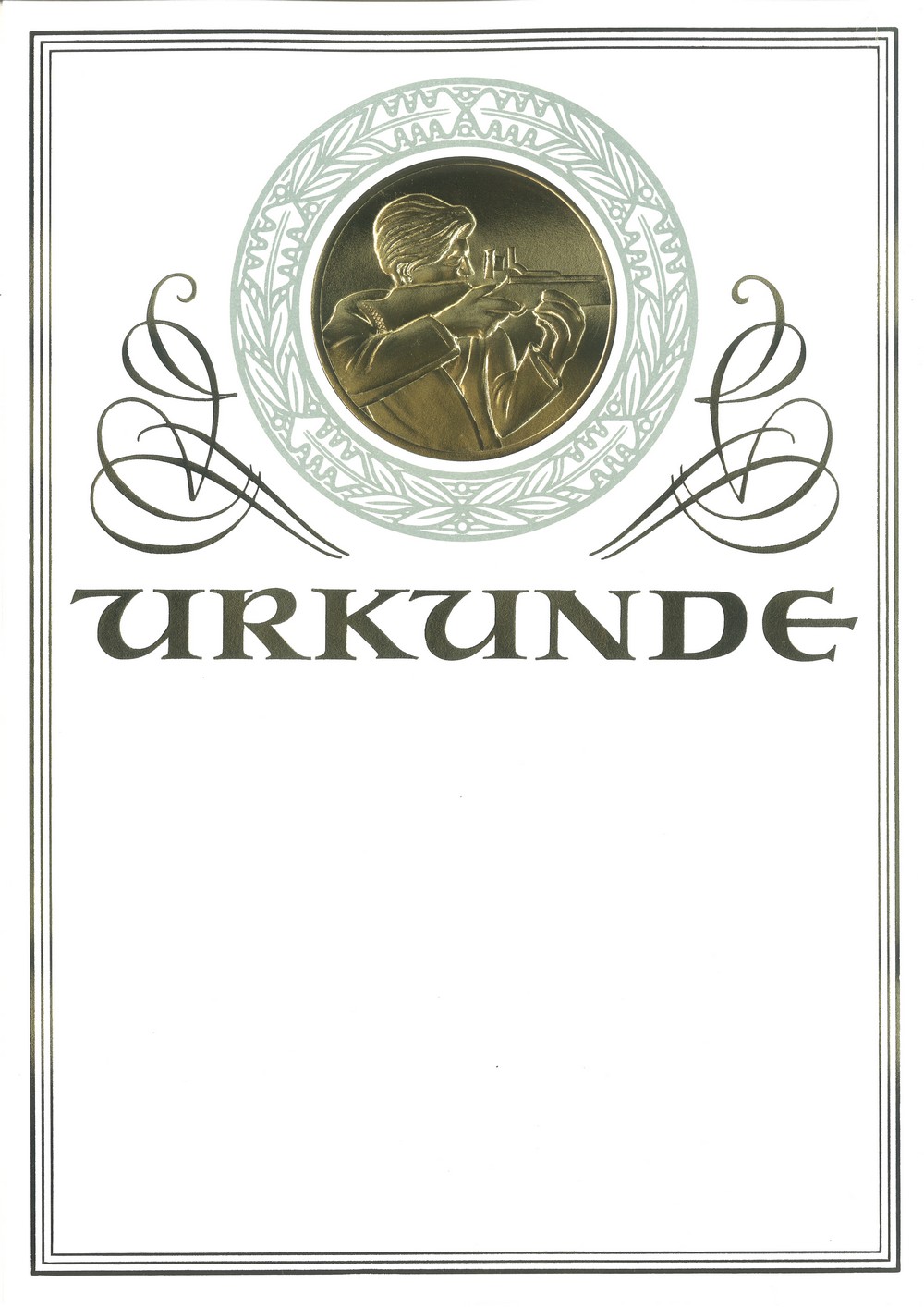 Schützensport Urkunde in DIN A4 - Goldfolienprägung - Relief, zum selber gestalten, Drucker geeignet,