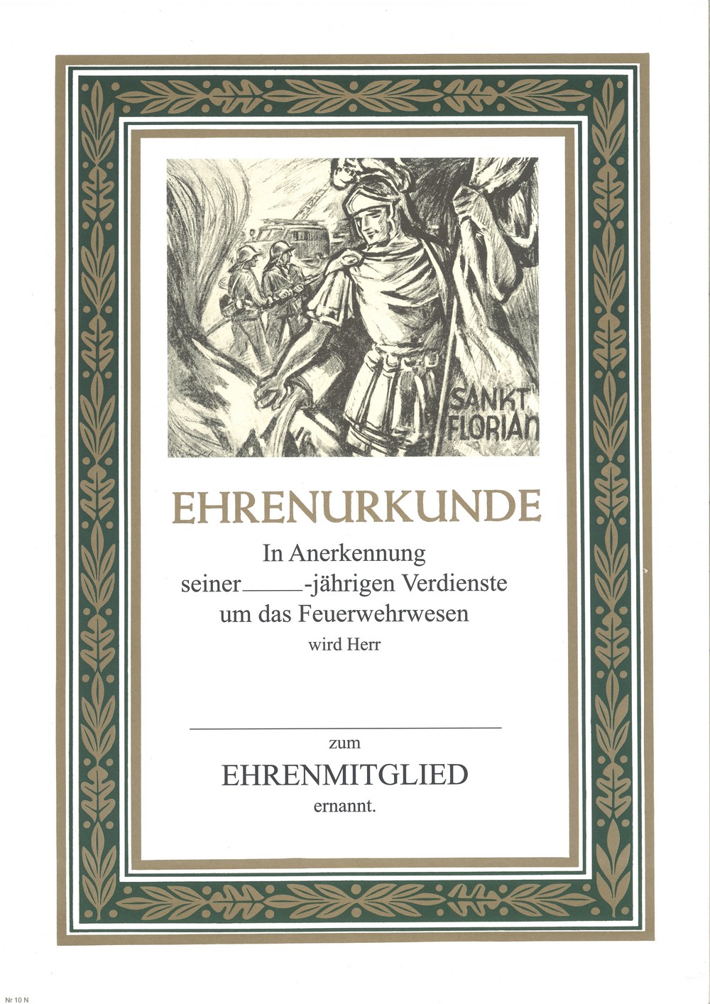 Feuerwehurkunde - Ehrenurkunde mit Text in DIN A 3, Bild