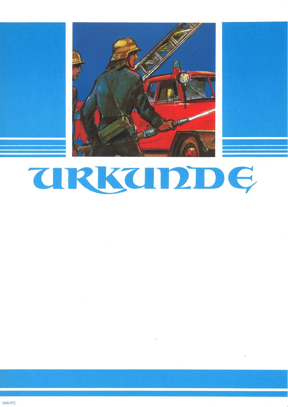 Neutrale Urkunde im Format DIN A 4 - Motiv Feuerwehr - Bild wird lose geliefert zum selber gestalten, Drucker geeignet,